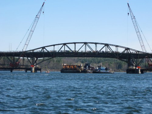 This past Tuesday morning I ran the scow up to Newington, NH to observe the girder lift on the General Sullivan Bridge over Little Bay.