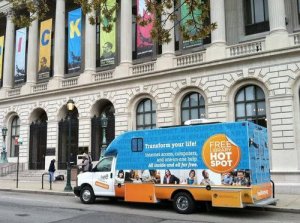 “Rainy here in Philly today. Going to a library branch with the Techmobile to do a geography program for some 4th graders–should be fun!”