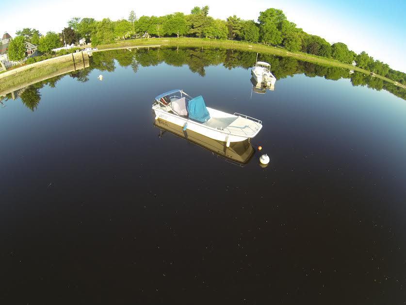 Now we were much closer to the Phillips Academy boathouse and from above one could detect a faint whine , and I just then spotted the human controller at the boat ramp.