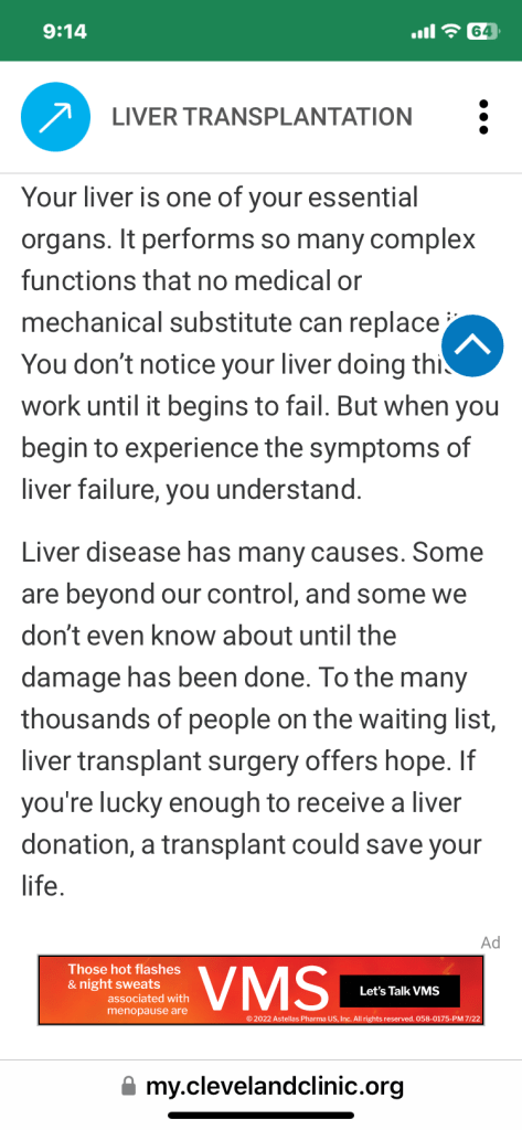 new Cut out the alcohol Date: 04/17/2023Author: Mike Lambert 0 Comments https://my.clevelandclinic.org/health/treatments/8111-liver-transplantation Share this:Share Print (Opens in new window) Print Email a link to a friend (Opens in new window) Email Like Loading... Related