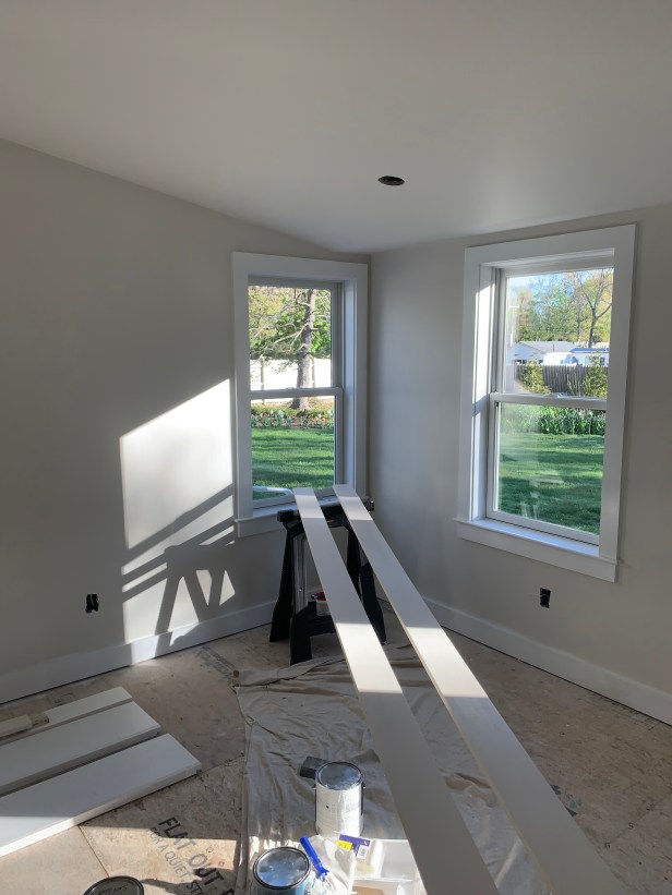 Last of the baseboards. I’m painting them now before they are set. My walls are done and I’ll ask the crew to take it easy on Monday.
