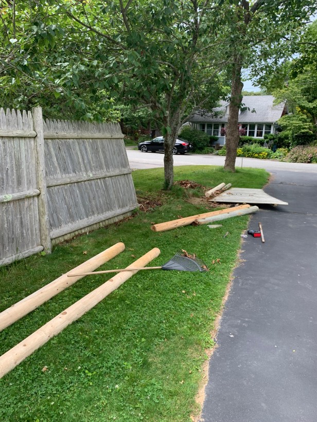 All done. I guess this end of the fence has been flapping for 3 years. This is a windy spot.